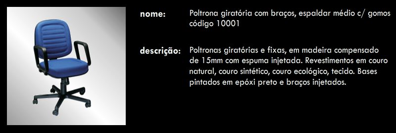 Poltrona giratória com braços, espaldar médio c/ gomos 10001