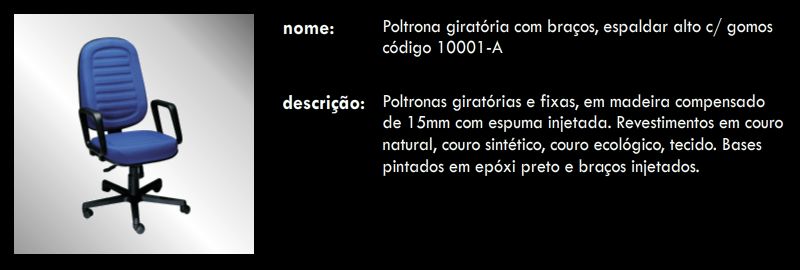 Poltrona giratória com braços, espaldar alto c/ gomos 10001-A