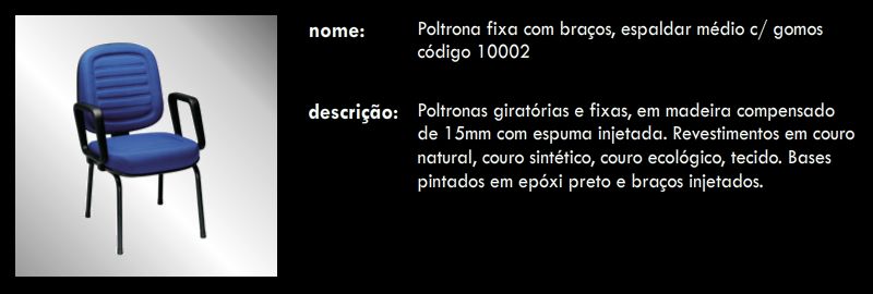 Poltrona fixa com braços, espaldar médio c/ gomos 10002