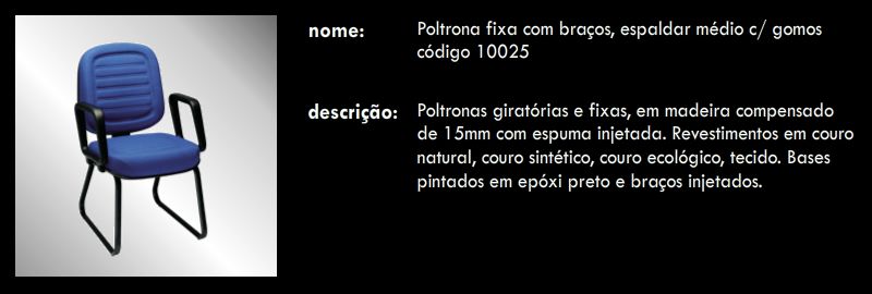 Poltrona fixa com braços, espaldar médio c/ gomos 10025