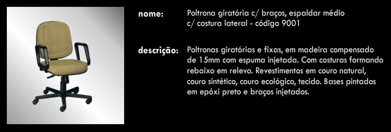 Poltrona giratória com braços, espaldar médio c/ costura lateral 9001