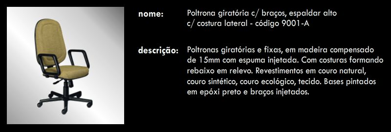 Poltrona giratória com braços, espaldar alto c/ costura lateral 9001-A