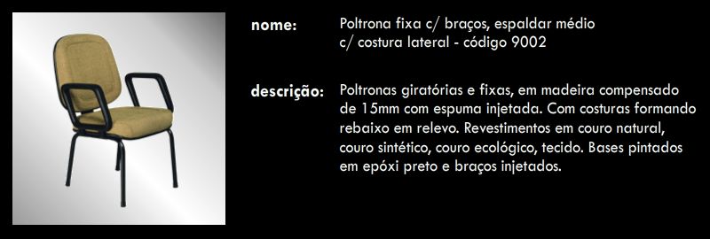 Poltrona fixa com braços, espaldar médio c/ costura lateral 9002
