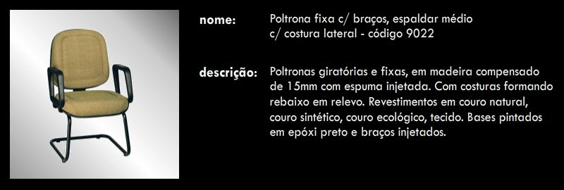 Poltrona fixa com braços, espaldar médio c/ costura lateral 9022