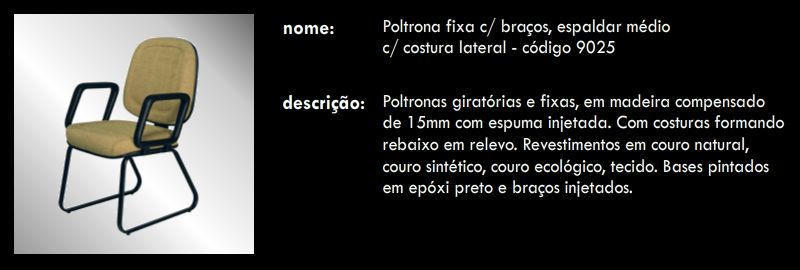 Poltrona fixa com braços, espaldar médio c/ costura lateral 9025