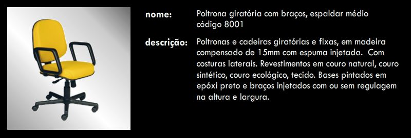 Poltrona giratória com braços, espaldar médio 8001