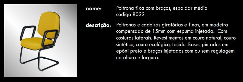Poltrona fixa com braços, espaldar médio 8022