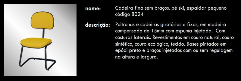 Cadeira fixa sem braços, pé ski, espaldar pequeno 8024