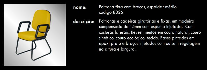 Poltrona fixa com braços, espaldar médio 8025