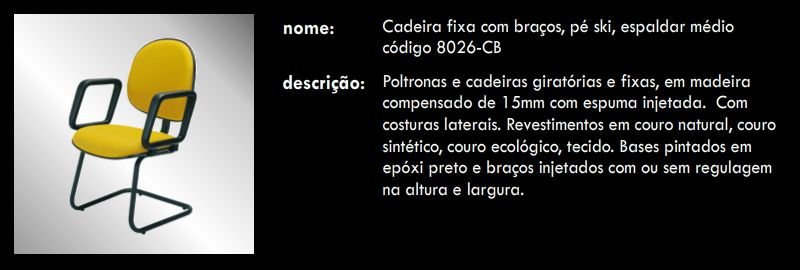 Cadeira fixa com braços, pé ski, espaldar médio 8026-CB