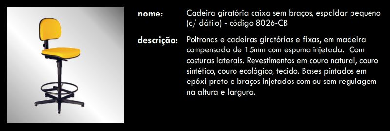 Cadeira giratória sem braços, espaldar pequeno (c/ dátilo) 8026-CB
