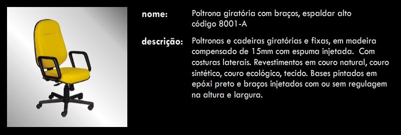 Poltrona giratória com braços, espaldar alto 8001-A