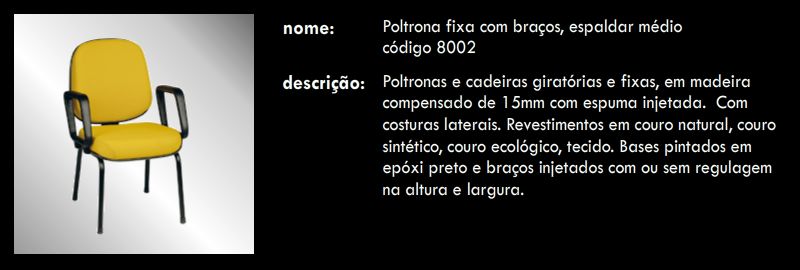 Poltrona fixa com braços, espaldar médio 8002