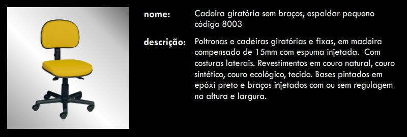 Cadeira giratória sem braços, espaldar pequeno 8003