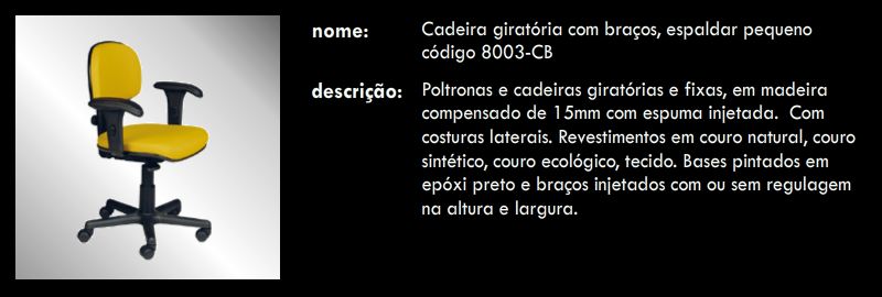Cadeira giratória com braços, espaldar pequeno 8003 CB