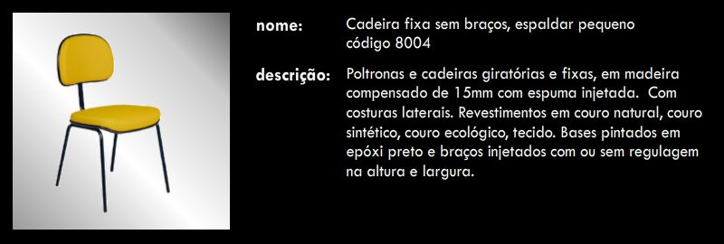 Cadeira fixa sem braços, espaldar pequeno 8004