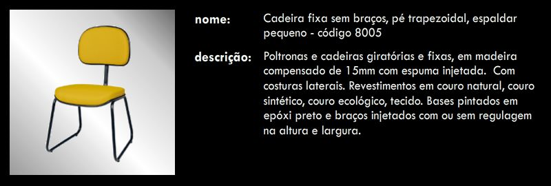 Cadeira fixa sem braços, pé trapezoidal, espaldar pequeno 8005
