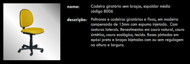 Cadeira giratória sem braços, espaldar médio 8006