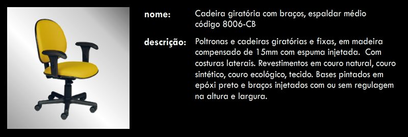 Cadeira giratória com braços, espaldar médio 8006 CB
